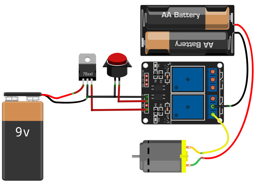 Nu blir ovanstående konstruktion lite overkill för att slå av/på en motor. Man hade såklart kunnat göra på följande sätt.